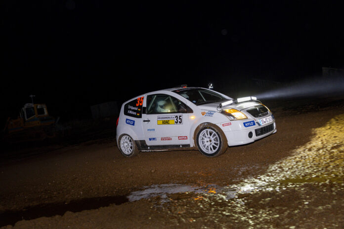 Tarek Hamadeh-Spaniol (Saarbrücken) und Co-Pilot Henry Wichura(Berlin) starteten furios in das Event, doch bereits auf Wertungsprüfung Nummer zwei drehte nur noch einer am Rad. Ungewohnt, aber doch irgendwie gewohnt, startete das HYLO-Duo in einem neuen Fahrzeug, welches äußerlich, zumindest was die Karosserie betrifft, identisch ausschaut. Technisch handelt es sich bei dem neuen Citroën C2R2 MAX allerdings um ein völlig anderes Fahrzeug als der vorherige Citroën C2 Challenge. „Wir haben nun keine synchronisierte H-Schaltung mehr, sondern ein sequenzielles Renngetriebe verbaut. Wir drücken den Schalthebel sozusagennur noch nach vorne, um runter-und ziehen den Hebel nach hinten, um hochzuschalten und benötigen dabei kein Kupplungspedal mehr. Das spart bei jedem Schaltvorgang Zeit und das Fahren macht so unglaublich viel Laune. Des Weiteren haben wir neben guten 25 PS mehr Leistung auch eine deutlich bessere Fahrdynamik mit mehr Einstellungsmöglichkeiten, um das Setup noch präziser aufzubauen“, fasste Tarek die Neuerungen zusammen.