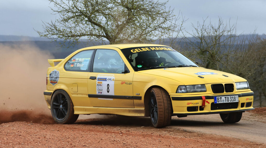 Tony Bayer und Co-Pilot Dominik Buß erkämpften sich im BMW 323 TI mit dem zweiten Platz hinter Müller / Spreitzer in der Klasse NC2 die Punkte, mit denen sie nun auf den dritten Platz der DRC-Zwischenwertung nach vorne fuhren. „Wir sind mit unserer Leistung sehr zufrieden. Zu Beginn passte unsere Reifenmischung nicht optimal, aber ab der dritten WP konnten wir an unser Limit gehen und hatten bis zum Schluss einen guten Fight mit Kevin,“ freute sich Bayer und ergänzt: „Das ist unsere zweite Saison im DRC. Es ist als Amateurteam die einzig sinnvolle Meisterschaft. Es sind die schönsten Rallyes des Jahres dabei und am Ende kann man sogar noch ein Preisgeld einfahren.“
